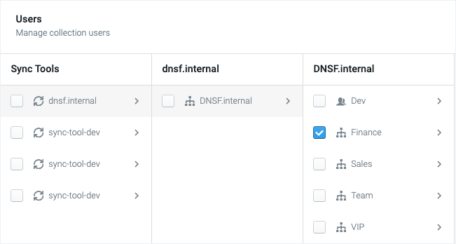 Once the Collection has been added, a Users section appears below - In the Users section, navigate left-to-right to the level of granularity needed for the Collection—select the checkbox(es) next to the needed level of granularity