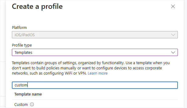 - Set Profile Type to Templates and select Custom