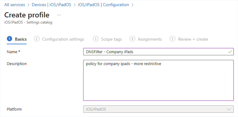 - From intune.microsoft.com, navigate to Devices > iOS/iPadOS > Configuration